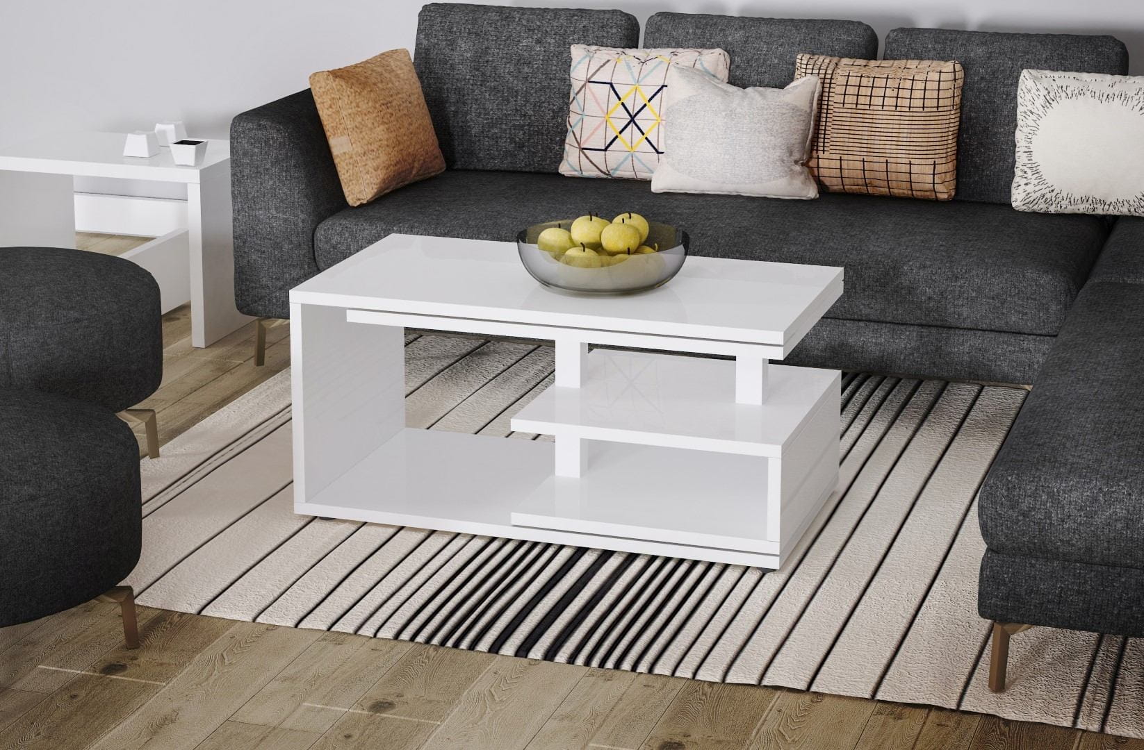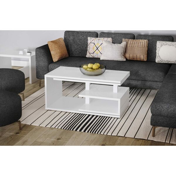 Ława Sana to praktyczna propozycja nowoczesnej, rozkładanej ławy do pokoju dziennego. Dzięki obrotowej części można łatwo powiększyć powierzchnię jak i zmienić kształt mebla. Praktyczne półki sprawdza się idealnie do przechowywania pilotów, gazet i krz
