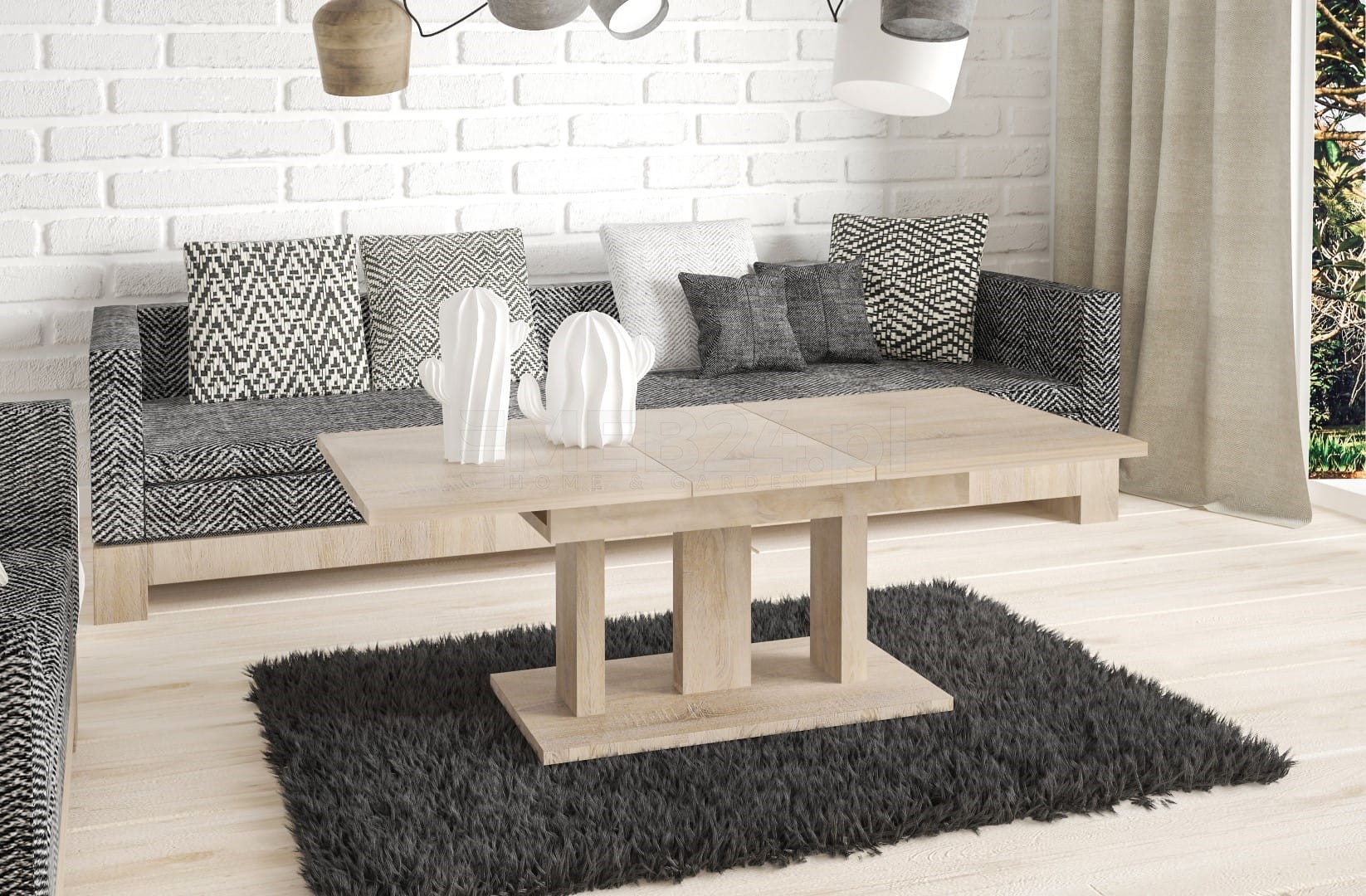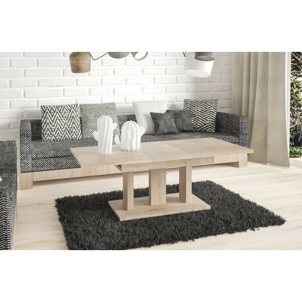 Ława Alia to stylowa i oryginalna propozycja nowoczesnej, rozkładanej ławy do pokoju dziennego. Dzięki wkładkom chowanym pod blatem ławę można szybko złożyć i rozłożyć na wypadek niezaplanowanej wizyty gości. Zastosowanie dwóch wkładek umożliwia wydłuż