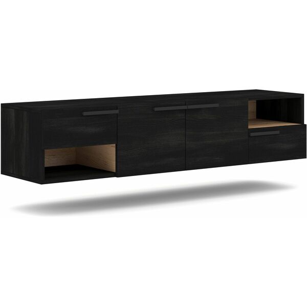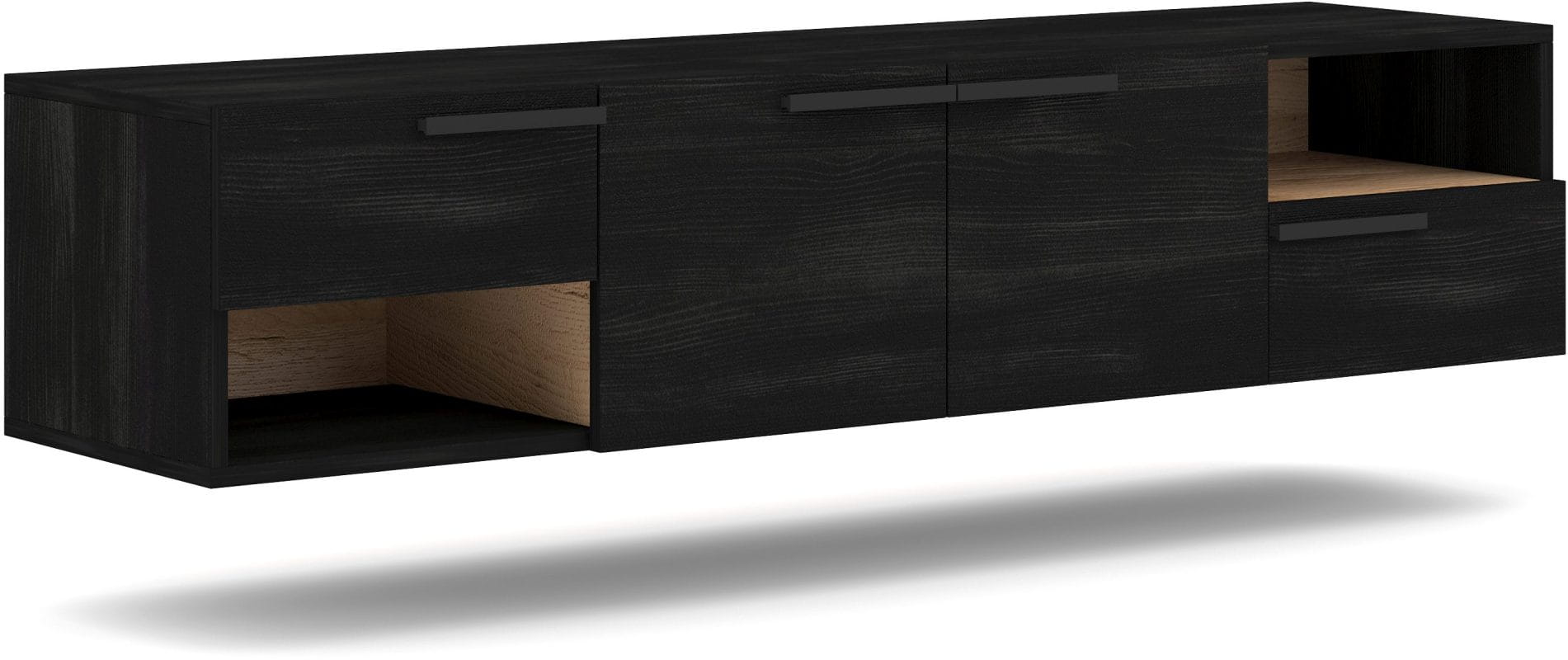 Szafka RTV wisząca RUBIK czarny northwood/dąb craft złoty