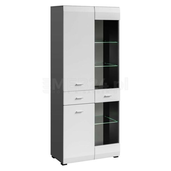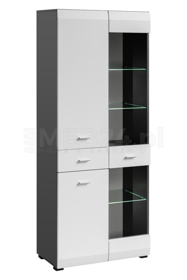 Szafa z witryną SV CLIF dzięki zastosowaniu delikatnych skosów we frontach, umożliwiło stworzenie charakterystycznego dla tego systemu designu.