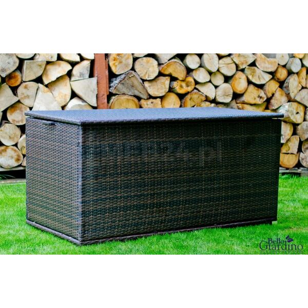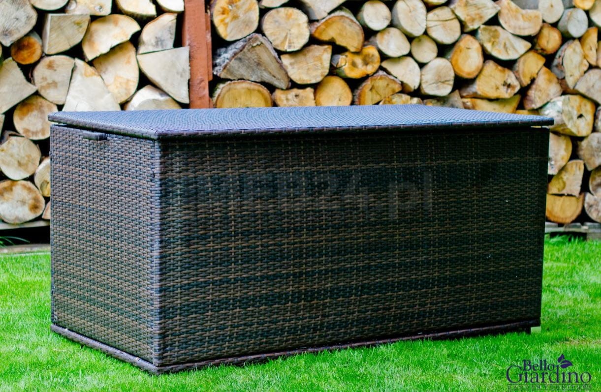Duża skrzynia ogrodowa z technorattan to uniwersalna propozycja, która ozdobi każdy ogród lub taras.